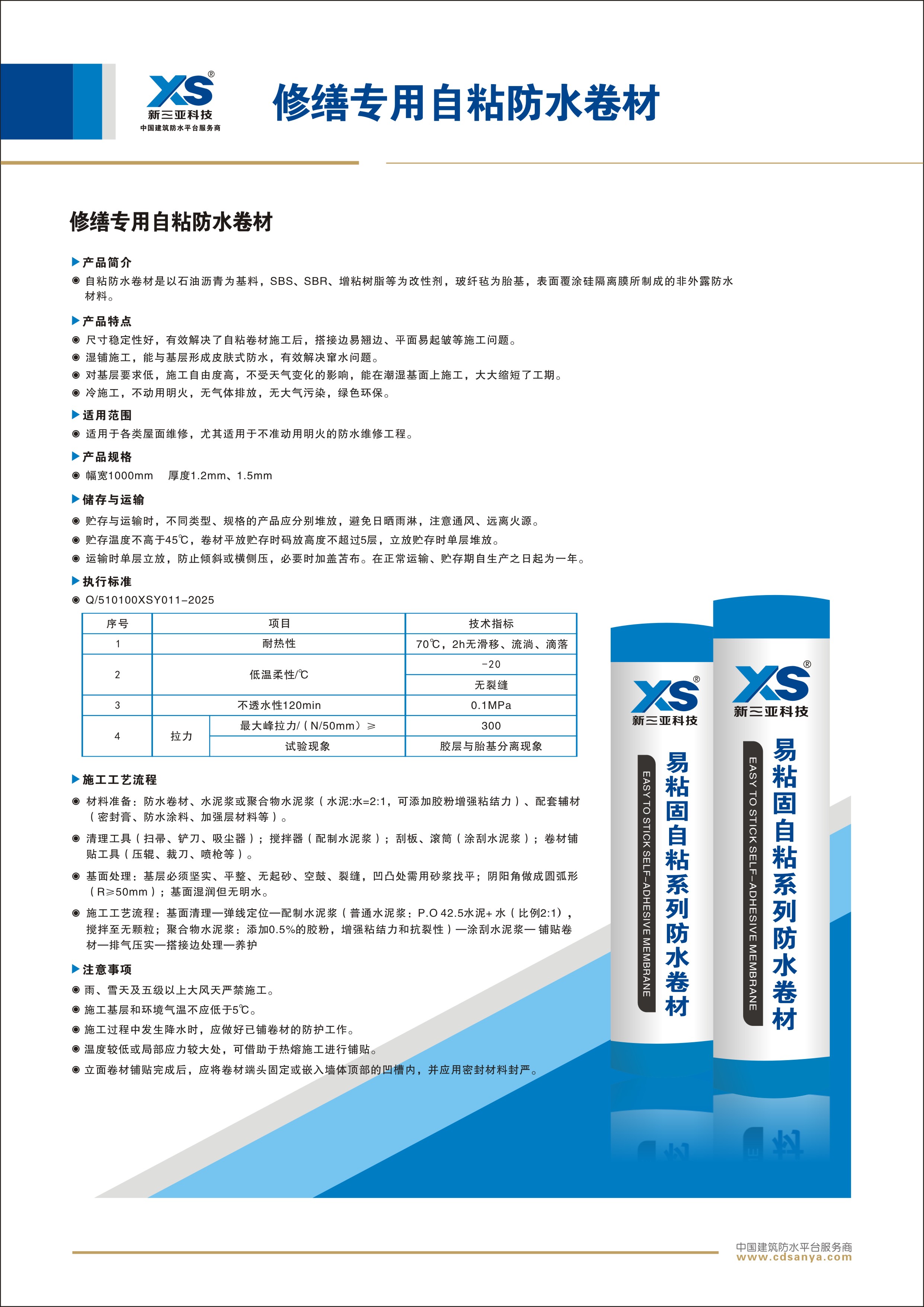 產(chǎn)品特點 1、尺寸穩(wěn)定性好,有效解決了自粘卷材施工后,搭接邊易翹邊、平面易起皺等施工問題。 2、濕鋪施工,能與基層形成皮膚式防水,有效解決竄水問題。 3、對基層要求低,施工自由度高,不受天氣變化的影響,能在潮濕基面上施工,大大縮短了工期。 4、冷施工,不動用明火,無氣體排放,無大氣污染,綠色環(huán)保。 | ![]() |