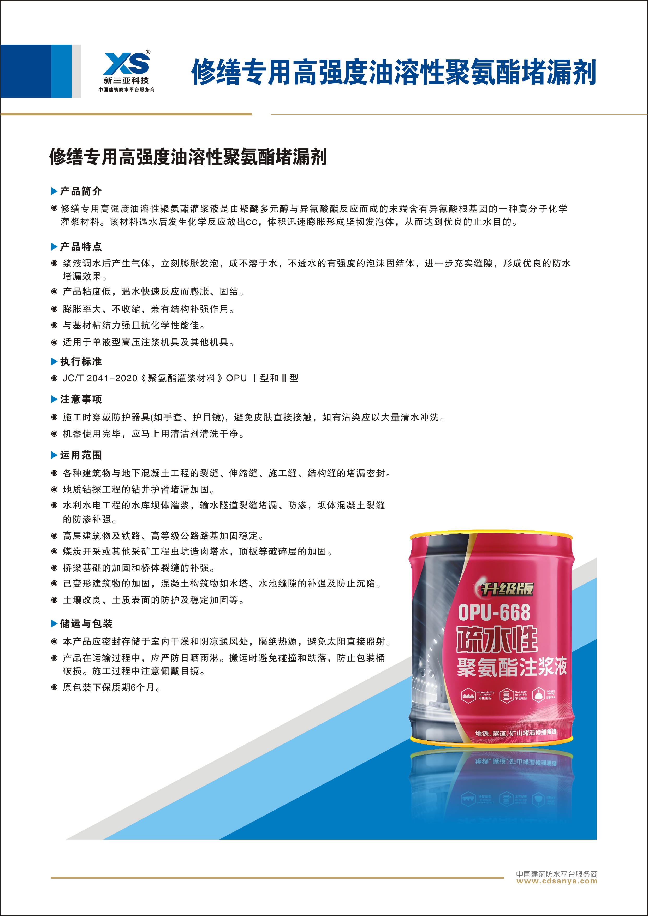 高強度油溶性聚氨酯堵漏劑(Ⅰ型 疏水性) | |